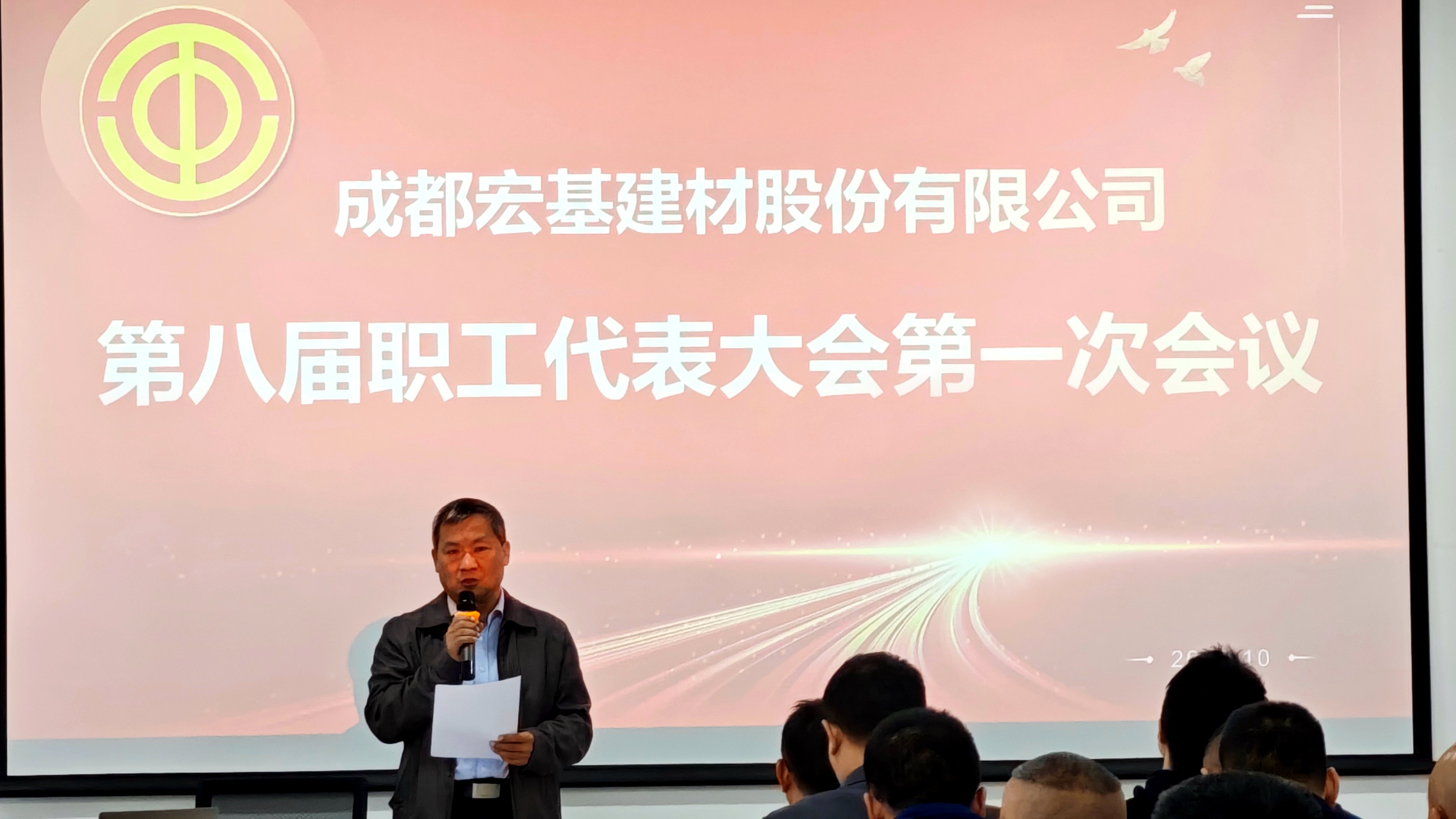 10月28日,成都宏基第八屆工會委員換屆選舉暨第八屆職工代表大會第一次會議在公司綠色建材智造中心會議室勝利召開。宏基黨支部書記、常務副總裁周世洪,副總裁吳雨,工會主席、副總裁胡亮等領導出席會議,來自各部門的職工代表們積極參會,共同履責。